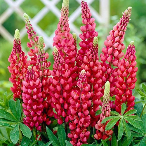 Hardy Lupins are a staple perennial for cottage gardens and are becoming increasingly popular for cut flower displays too. With their tall, stately spires of bloom, lupins are a real summer garden classic and certainly have the wow factor. Smothered in pea-like flowers, right to the top of their stems, their palmate, sage green foliage creates the perfect backdrop for the eye-catching blooms making a stunning statement in your garden.