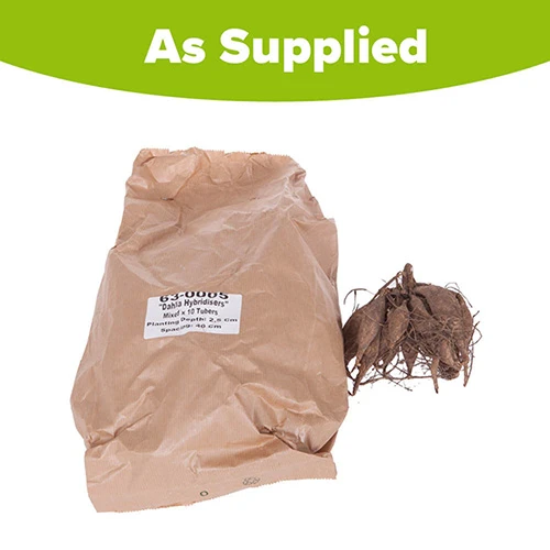 Each pack provides 10 mixed colour and shape tubers, which will reach 60-90cm tall, and produce 20-30 flowers each. These can be cut for the house, or left to enjoy outdoors. Dead-heading will prolong flowering well into Autumn. They will survive milder Winters, or the tubers can be lifted and kept dry over-Winter, or left in pots if you choose them to grow. Old-fashioned Dahlias – a great addition to any Autumn garden.